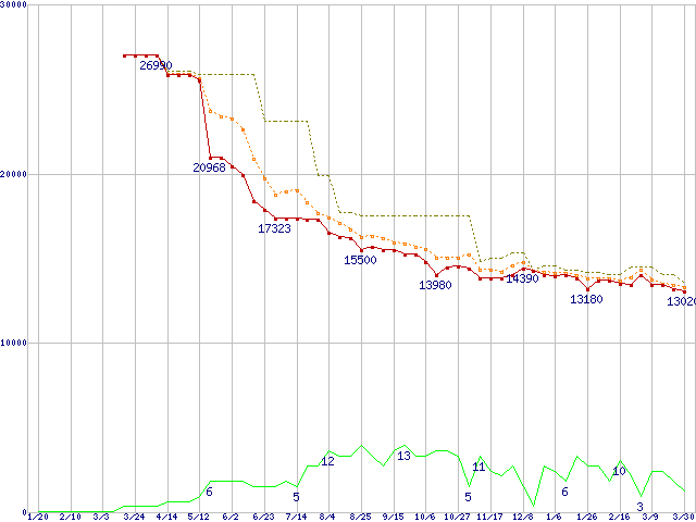 | WD3200JD (320GB)の価格推移 | | | (2005年1月20日~2006年3月30日) |