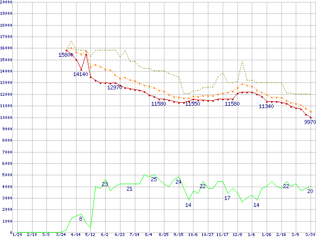 | HDT722525DLAT80 (250GB,8MB)の価格推移 | | | (2005年1月20日~2006年3月30日) |