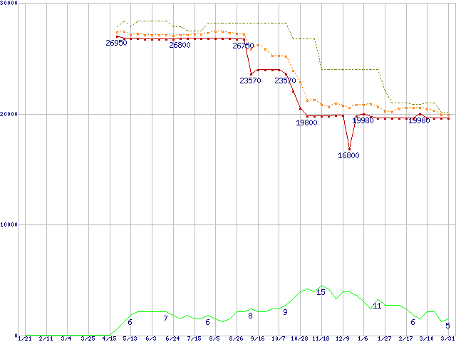 | Turion 64 MT-32 (1.8GHz,512KB) バルクの価格推移 | | | (2005年1月21日~2006年3月31日) |