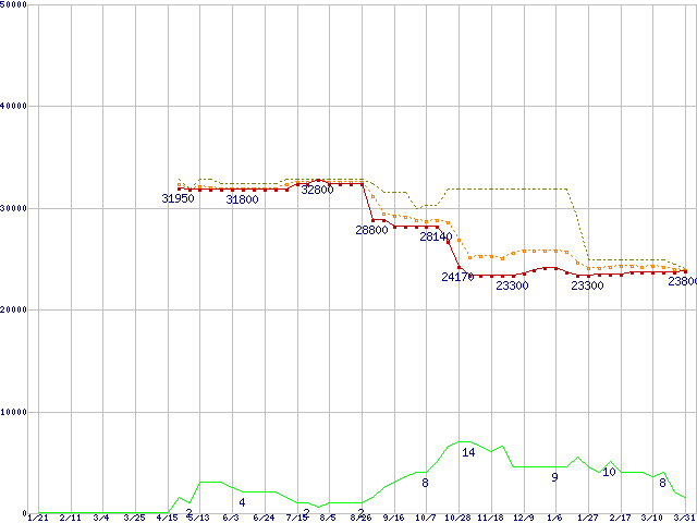 | Turion 64 MT-34 (1.8GHz,1MB) バルクの価格推移 | | | (2005年1月21日~2006年3月31日) |