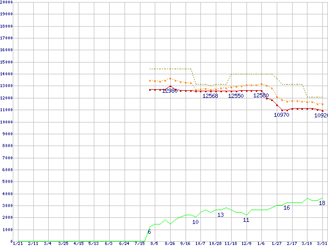 | Celeron D 346 (3.06GHz)の価格推移 | | | (2005年1月21日~2006年3月31日) |