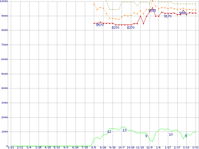 | Sempron 2800+ (1.6GHz,L2 256KB)の価格推移 | | | (2005年1月21日~2006年3月31日) |
