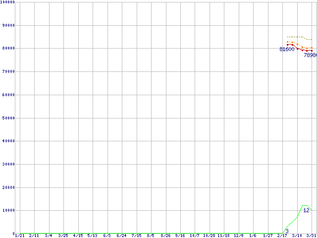 | Core Duo T2600 (2.16GHz)の価格推移 | | | (2005年1月21日~2006年3月31日) |
