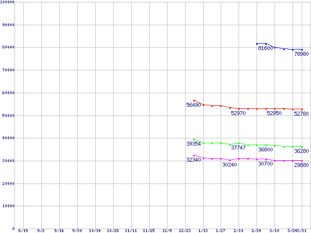 mPGA479M (FSB 400MHz,L2 1MB)の最安値推移