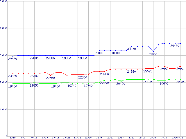 | Socket 478 (FSB 800MHz,L2 1MB,Hyper-Threading)の最安値推移 | | | (2005年8月19日~2006年3月31日) |