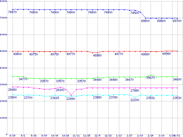 Socket 940 (FSB 1000MHz,L2 1MBx2,Dual Core)の最安値推移