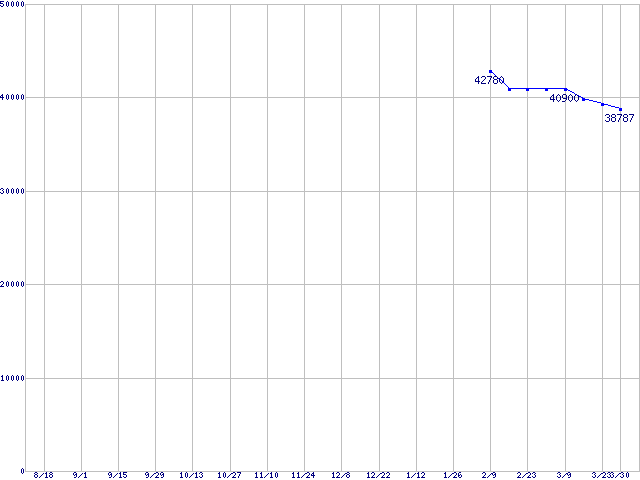 | WD Raptor X (10000rpm,Serial ATA/150,16MB,NCQ)の最安値推移 | | | (2005年8月18日~2006年3月30日) |