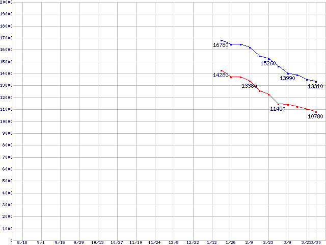 | MaXLine III (7200rpm,16MB,Serial ATA II,3Gbps)の最安値推移 | | | (2005年8月18日~2006年3月30日) |