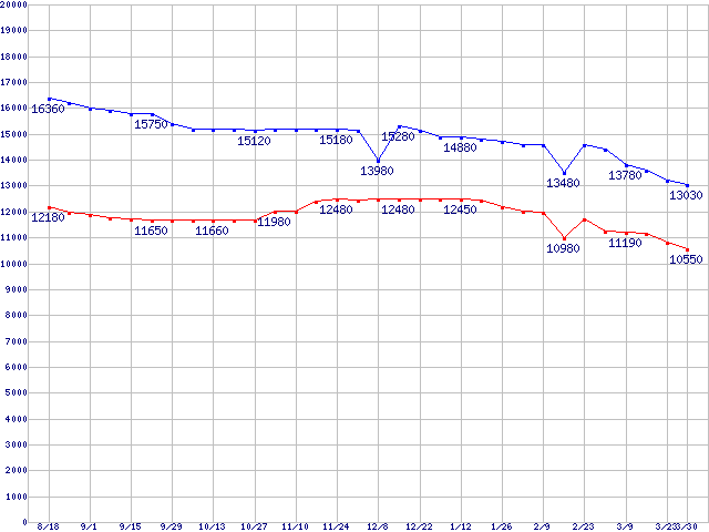 | MaXLine III (7200rpm,16MB,Ultra ATA/133,RoHS指令準拠)の最安値推移 | | | (2005年8月18日~2006年3月30日) |