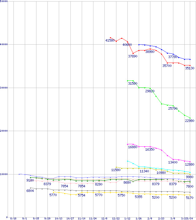 | Barracuda 7200.9 (7200rpm,Ultra ATA/100)の最安値推移 | | | (2005年8月18日~2006年3月30日) |
