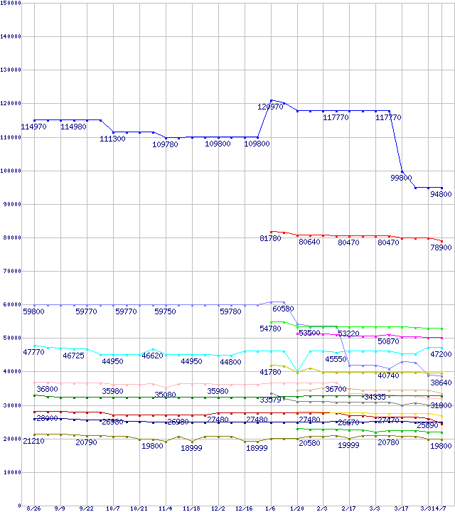 LGA 775・FSB 800MHzの最安値推移