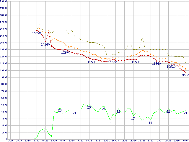 | HDT722525DLAT80 (250GB,8MB)の価格推移 | | | (2005年1月27日~2006年4月6日) |