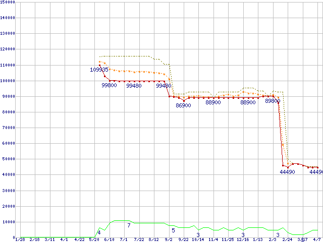 | Opteron 265 (1.8GHz)の価格推移 | | | (2005年1月28日~2006年4月7日) |