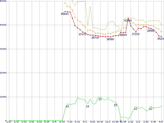 | HDS725050KLAT80 (500GB,8MB)の価格推移 | | | (2005年1月27日~2006年4月6日) |