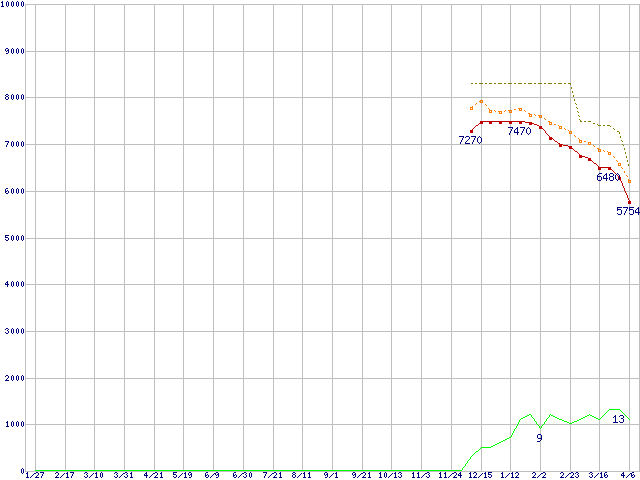 | ST3808110AS (80GB,8MB)の価格推移 | | | (2005年1月27日~2006年4月6日) |