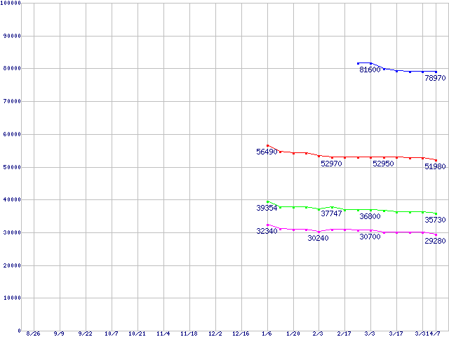 mPGA479M (FSB 400MHz,L2 1MB)の最安値推移