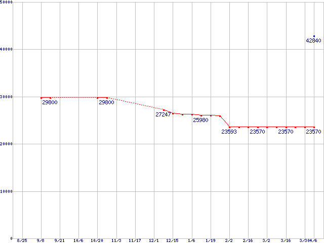 WD Caviar RE2 (7200rpm,Serial ATA II,16MB)の最安値推移