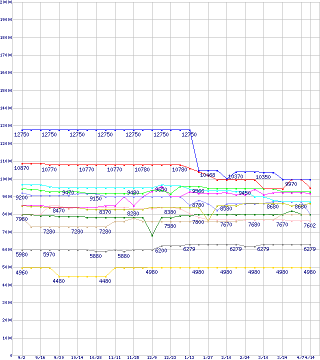 CPU主要製品(最安値1万円~2万円未満)の最安値推移