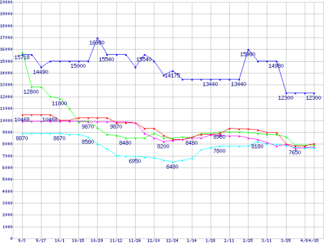 メモリ主要製品の最安値推移