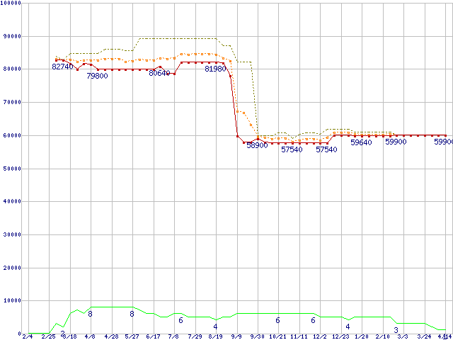| Xeon 3.40GHz (L2 2MB)の価格推移 | | | (2005年2月4日~2006年4月14日) |