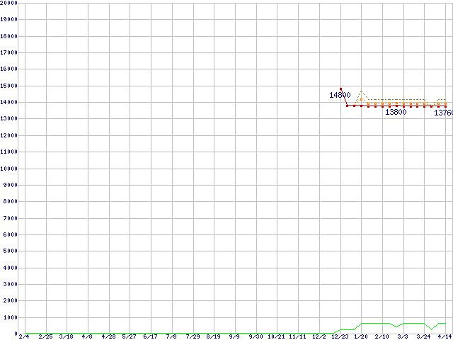 | Mobile Sempron 3100+(1.8GHz,Socket 754,256KB,25W版) バルクの価格推移 | | | (2005年2月4日~2006年4月14日) |