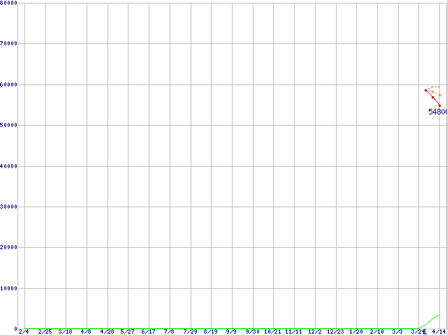 ※このグラフは過去のデータも税率5%相当に調整した税込み相当額のグラフです。 税率変更や、総額表示方式導入(2004年4月)の影響は除いています。 | | | ●凡例 | 最安値 (点線部は販売店未確認 または未調査) | 平均値 | 最高値 | ショップ数 |