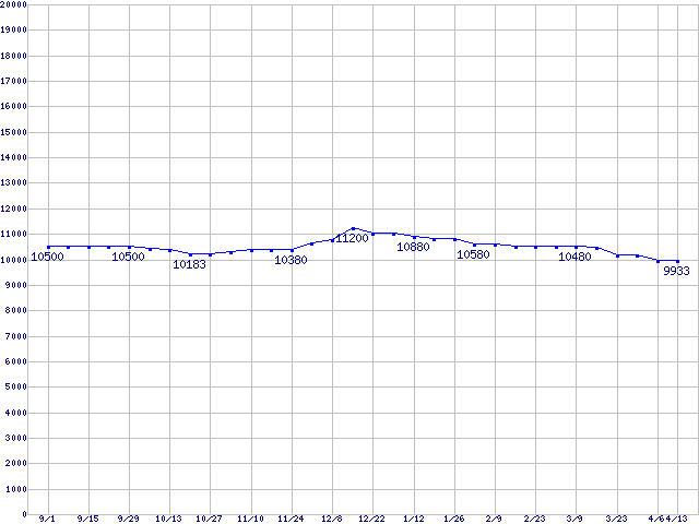 | WD Caviar[Special Edition] (7200rpm,Ultra ATA/100,8MB)の最安値推移 | | | (2005年9月1日~2006年4月13日) |