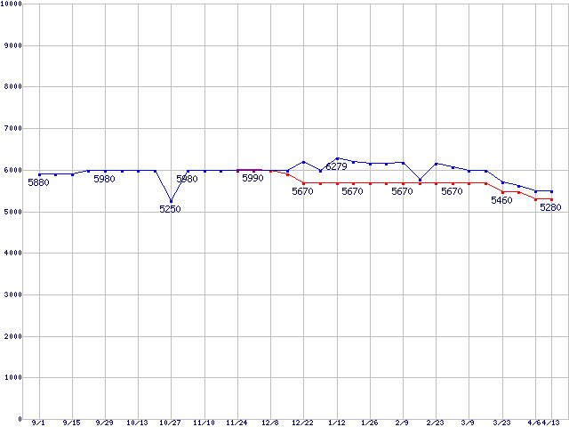 Deskstar 7K80 (7200rpm,Serial ATA II/3Gbps)の最安値推移
