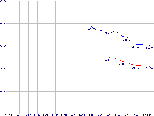 | DiamondMax 11 (7200rpm,16MB,Serial ATA II,3Gbps)の最安値推移 | | | (2005年9月1日~2006年4月13日) |