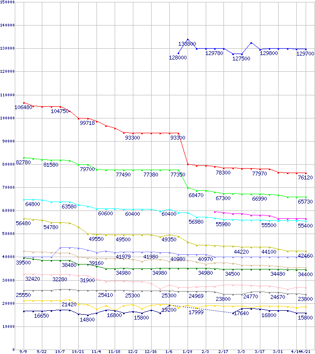 | Socket 939・FSB 1000MHzの最安値推移 | | | (2005年9月9日~2006年4月21日) |