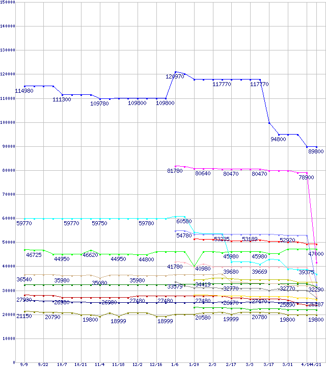 Socket 478・FSB 800MHzの最安値推移