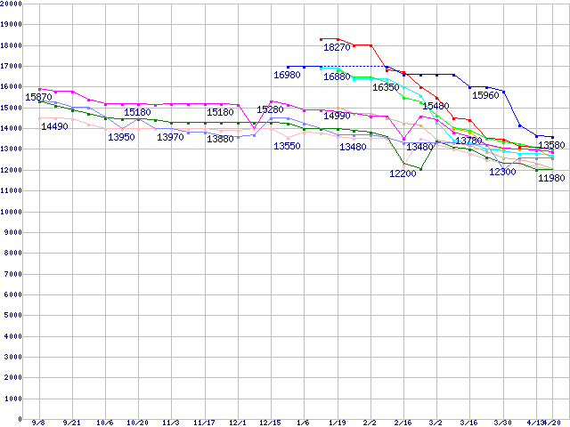 ※点線部は販売店が確認できなかった、または調査データがないことを示します