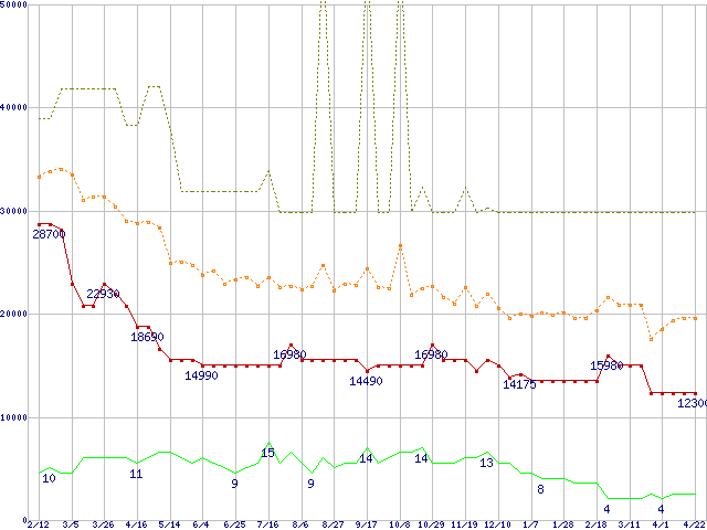 PC3200(DDR400) DDR SDRAM DIMM ECC対応 Registeredタイプの最安値推移