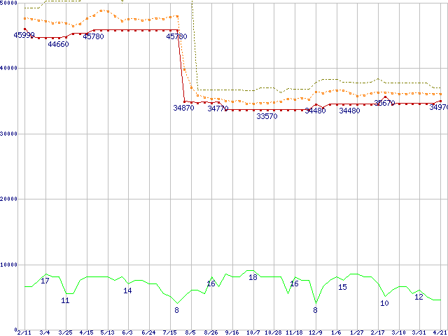 | Pentium M 760 (2GHz)の価格推移 | | | (2005年2月11日~2006年4月21日) |