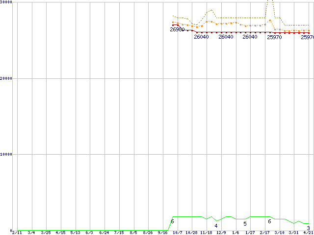 | Xeon 2.80GHz (L2 2MB)の価格推移 | | | (2005年2月11日~2006年4月21日) |