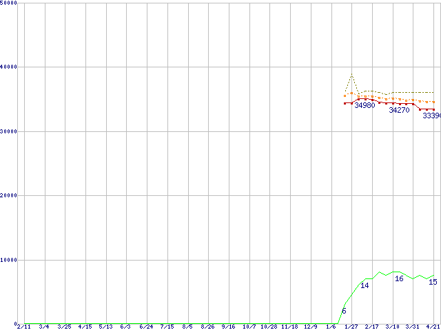 | Pentium 4 651 (3.40GHz)の価格推移 | | | (2005年2月11日~2006年4月21日) |