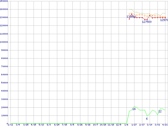 | Athlon 64 FX-60 (2.6GHz,L2 1MBx2)の価格推移 | | | (2005年2月11日~2006年4月21日) |