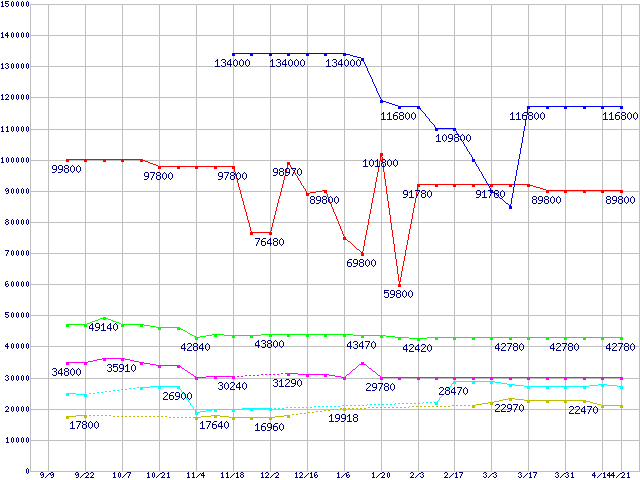Socket 939 (FSB 1000MHz,L2 1MB)の最安値推移