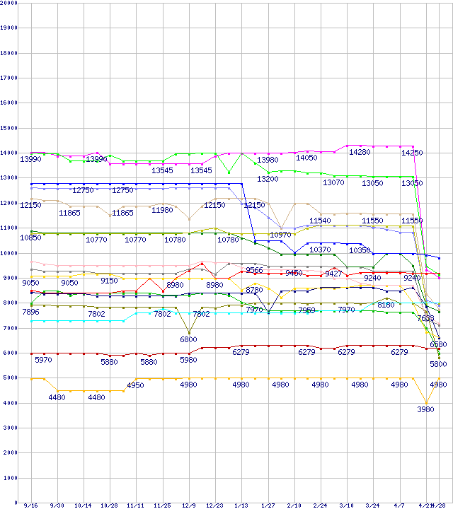 CPU主要製品(最安値1万円~2万円未満)の最安値推移