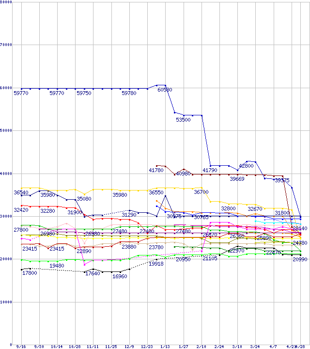 CPU主要製品(最安値3万円~6万円未満)の最安値推移