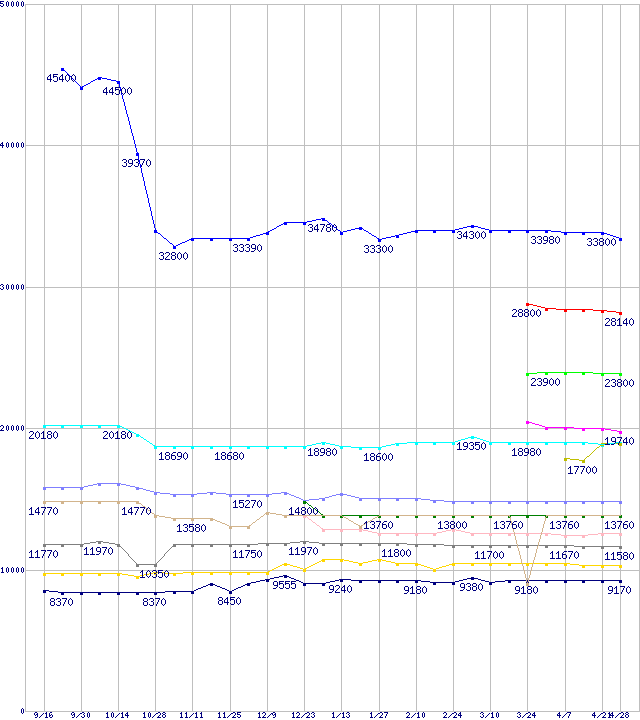| Socket 754・FSB 800MHzの最安値推移 | | | (2005年9月16日~2006年4月28日) |