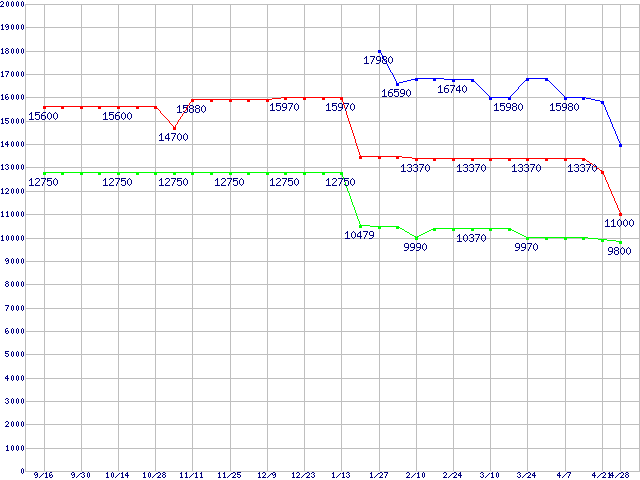mPGA 479M・FSB 533MHzの最安値推移