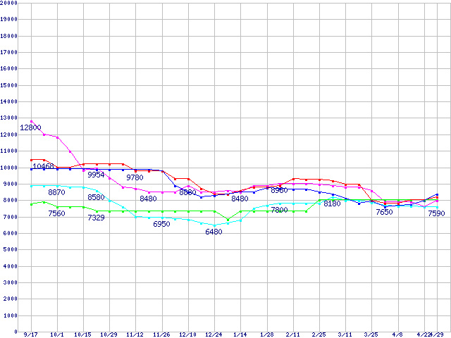 メモリ主要製品(最安値5千円~1万円未満)の最安値推移