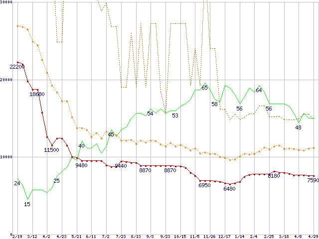 | PC2-4200* 1GBの価格推移 | | | (2005年2月19日~2006年4月29日) |