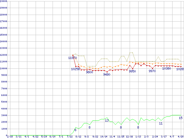 | Sempron 3000+ (1.8GHz,L2 128KB)の価格推移 | | | (2005年2月18日~2006年4月28日) |