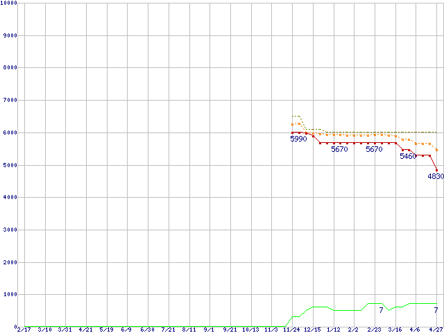 | HDS728040PLA320 (40GB,2MB)の価格推移 | | | (2005年2月17日~2006年4月27日) |