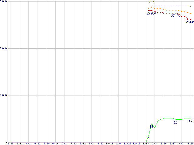 | Pentium 4 641 (3.20GHz)の価格推移 | | | (2005年2月18日~2006年4月28日) |