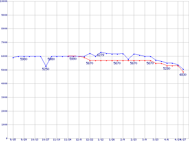 Deskstar 7K80 (7200rpm,Serial ATA II/3Gbps)の最安値推移