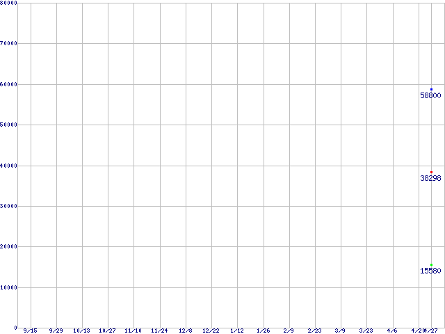 | Barracuda 7200.10 (7200rpm,Serial ATA II/3Gbps)の最安値推移 | | | (2005年9月15日~2006年4月27日) |