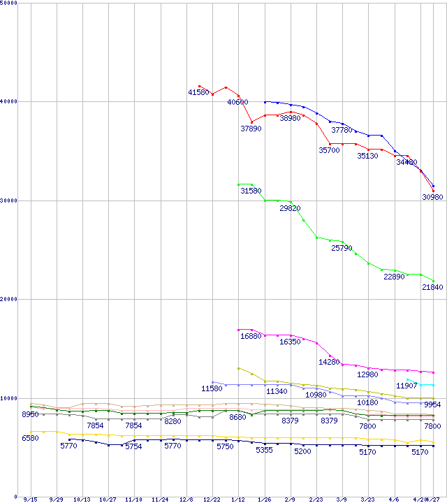 | Barracuda 7200.9 (7200rpm,Ultra ATA/100)の最安値推移 | | | (2005年9月15日~2006年4月27日) |